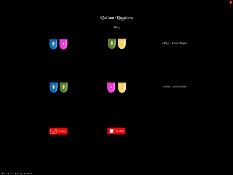 Valiant Kingdoms is a 2 player board game. You control your kingdom by moving your dukes, duchesses, emperor and empress around on the game board. The object of the game is to take all of your opponents game pieces. The game can be played against opposing empires or opposing genders. Player 1 is the player who will host the game, and player 2 is the player who will receive and accept the invitation to play from Player 1.