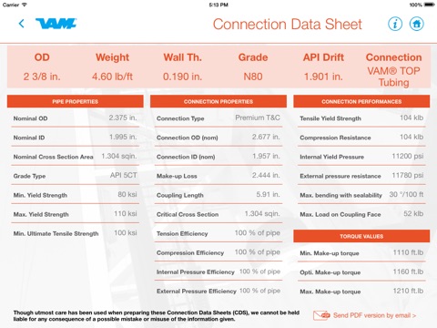 The Vallourec Oil & Gas Application made for iPhone, iPad and Android, includes the following tools related to VAM® products: