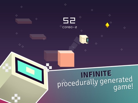 Simple and fast, one touch, infinite platformer, automatically generated world provides fun for many hours.