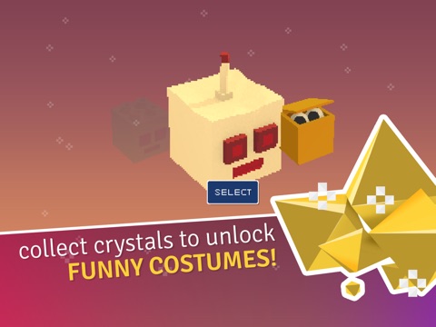 As a cube hopper You will jump higher and higher, clicking once per second. Get a substantial stock of crystals and unlock funny characters. Find out how it is to be in the invisible world as a toaster or plant pot :). You will discover 20 square, cube-like strange characters, and will experience a unique adventure in 20 great designed color biomes.