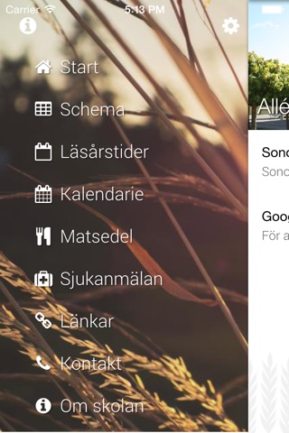 Exempel på innehåll: Nyheter, schema, läsårstider, matsedel, kontaktinformation, sjukanmälan mm.