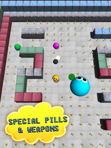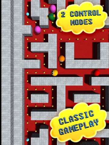 2 control modes, 3 camera views, 5 types of ghosts with unique characteristics, different weapons and pills, 30 levels with their own mazes and 8 fruits for bonus points!