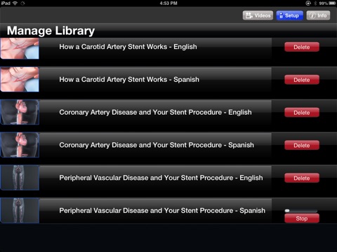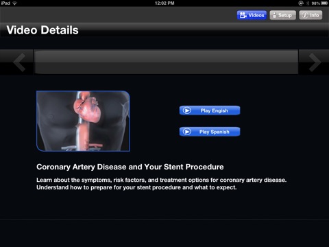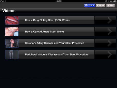 The Vascular Videos app is a tool to assist U.S. health care providers in educating their patients about vascular health and interventional procedures. Through the use of mobile media, health care providers can conveniently educate their patients about coronary and/or peripheral artery disease, share what to expect before and after a catheterization procedure, and show their patients how a stent is implanted.
