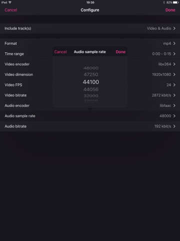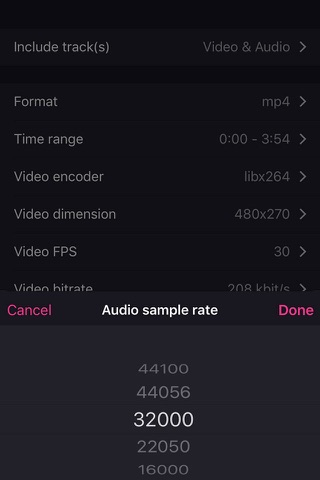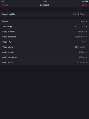 - Advanced mode to specify fps, video bitrate, arbitrary resolution, audio bitrate, codec etc