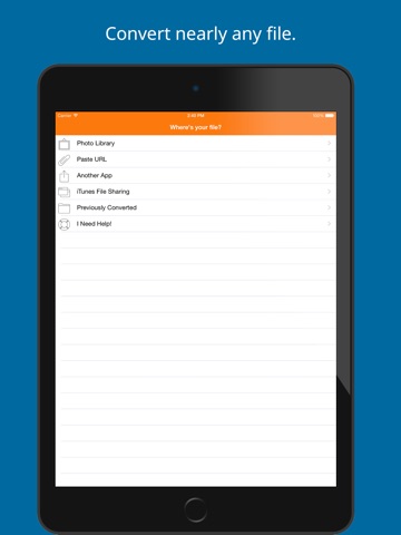 Save, Share or Open your converted files in your favorite apps immediately. You can even browse your previously converted files with our in-app file browser.
