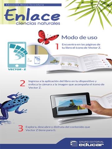 Todos los contenidos y el desarrollo intellectual de la aplicaciones para la educación en Ciencias Naturales están basados en la obra impresa Enlace Ciencias Naturales (serie de textos escolares). Estos han sido desarrollados por el Grupo Editorial Educar de acuerdo con las disposiciones legales naciones e internacionales sobre derechos de autor y propiedad intelectual.