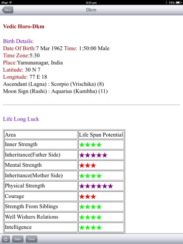 VedicHoro predicts lifelong potential luck based upon planet position at the time of birth and estimates current situation based upon transit of planets. Forecast can be known for any date and time based upon each individuals birth details.
