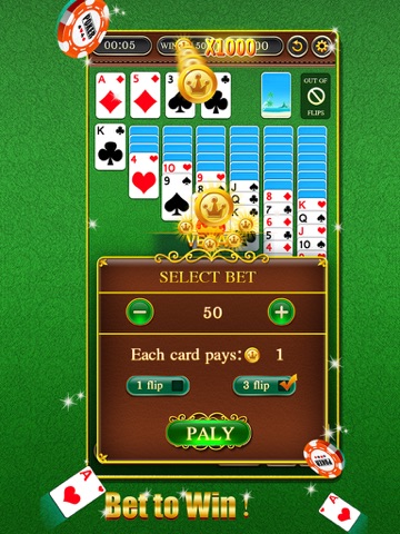 This solitaire app has Klondike Solitaire 1 card and Klondike Solitaire 3 card draw. To make the game much cooler, you can bet coins before each game and win a lot by every card you manage to collect!