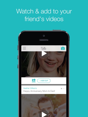 You can also use Vello to capture lifes every day moments, celebrations and special occasions. Post your Vello and invite everyone to contribute to your video, or play paparazzi and record clip after clip of your friends toasting and dancing at a wedding, laughing and eating cake at a birthday party or swimming and playing on vacation – Vello automatically turns everything into one single highlight reel.