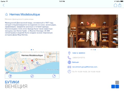 Простой в использовании справочник-путеводитель позволяет найти городские достопримечательности, уютные ресторанчики, модные бутики, развлекательные клубы, бары и многие другие не менее интересные для посещения места.