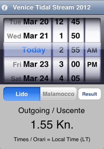 With this application you will always know at every moment during the year the value of currents in Venice Lagoon at the two fundamental points, Lido and Malamocco. The calculation is based on the official harmonic constants.