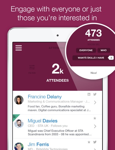 + See which of your existing LinkedIn and Twitter contacts are attending.