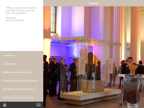 The British Museum app offers further information on the venue including details on events spaces, conferences, meetings and away days, product launches, awards and dinners, weddings and special occasions.