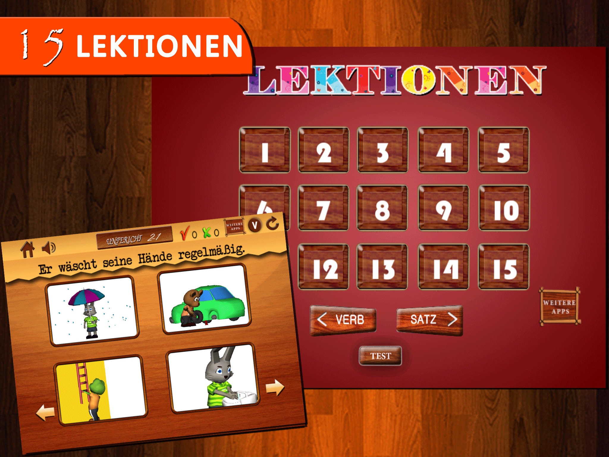 Verben für Kinder- Teil 1-Animierte Deutsch Sprach-Lern-Lektionen & Spiele: KIds learn German verbs easily Free at Mac App Store analyse