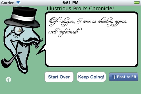 Once the conversion is finished, you can then continue verbosifying (making the passage longer and longer), post it to your Facebook wall, or even tap on Verbosifys mascot - the mighty Thesaurus Rex - and he will recite it aloud in a robotic Scottish accent using the "Flite" text-to-speech engine. How perfectly marvelous!