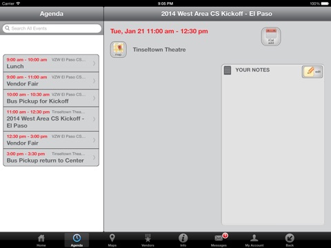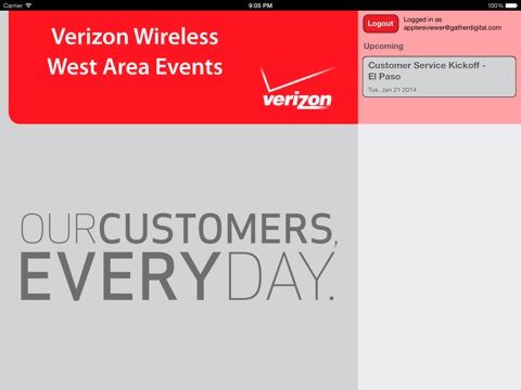 This application will be used for Verizon Wireless West Area events. Users will use the app to get information on daily schedules during meetings/conferences.