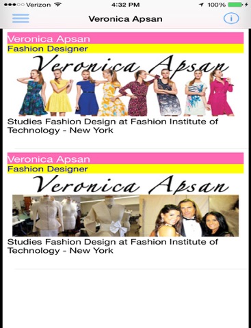 Everything about Fashion! Veronica Apsan is a 3rd year student the prestigious NYC Fashion Institute of Technology, majoring in fashion design. She is the current vice president of the Fashion Club. She is the fashion editor for new.jornal.us and an interviewer for the Fashion Channel on www.vejatv.com. She loves technology and this app will follow her budding carreer.
