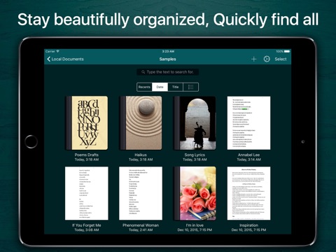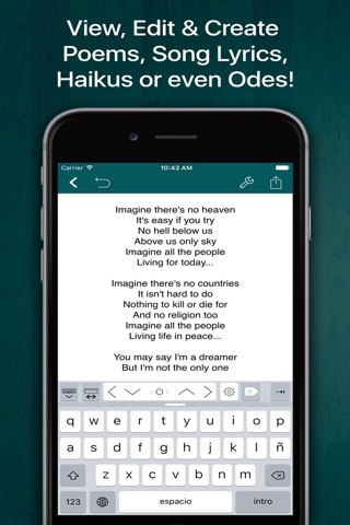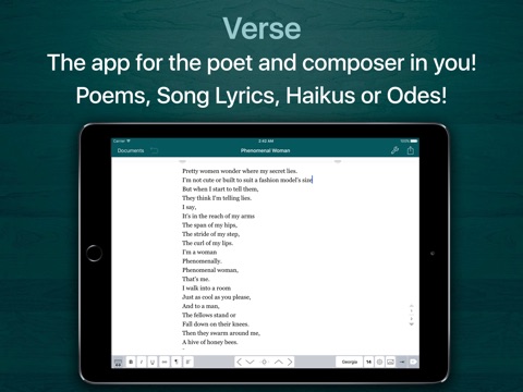 Write easily poems, song lyrics, haikus or even odes and more with Verse for iPad and iPhone.