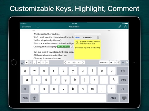· Exclusive extra keyboard row with direct access to styling and punctuation functions