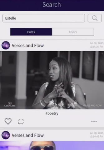Lexus Verses and Flow is a social networking application that allows fans of the TV show to view unreleased videos of the shows performers, take selfies, record videos, add text and drawings, and share them among other fans on the news feed.