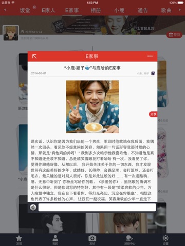 -饭堂 发布你最爱的爱豆照片到贴吧,说出你的想法,让所有粉丝认识你