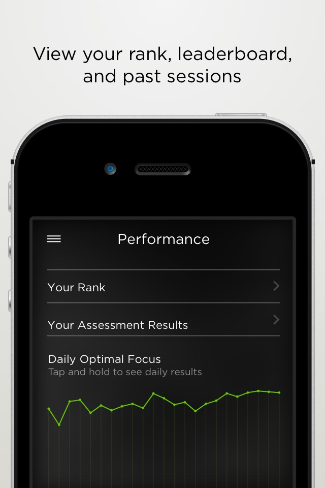 MEASURE YOUR PROGRESS: After a full exercise plan, take another NeuroPerformance Assessment to track how your brain has improved. The in-app performance tab allows you to track your daily progress and see how much time you spent in the optimal brain state.