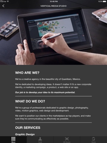 Vertical Media Studio is a fully distributed creative studio that puts out quality branding, web design and animation. Keep up with our latest updates through this app, check out our latest videos, graphics, explore our portfolio, and send us a shout-out!