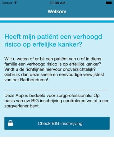 Meer informatie over erfelijke kanker vindt u op www.erfelijkekanker.nl. Deze verwijstest is gebaseerd op de Nederlandse CBO Richtlijn Mammacarcinoom (2012) en de Richtlijn Erfelijke Darmkanker (2016), zoals te vinden op www.oncoline.nl. Gebruik van deze verwijstest is alleen mogelijk voor zorgverleners, die inloggen met hun BIG-nummer.