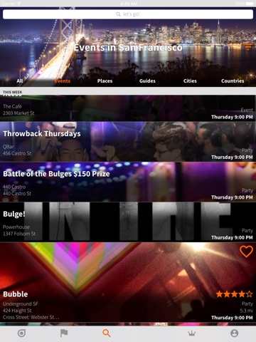 - Filters allow you to find the activity of your choice whether it be a bear bar, the sauna, cruising, the gym, or a night club.