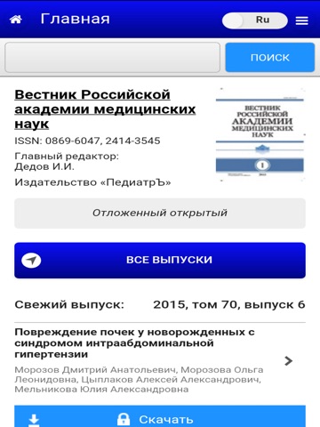 Журнал «Вестник Российской академии медицинских наук» авторитетное научное издание, издается с 1946 года.