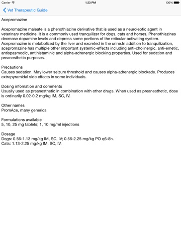 Vet Therapeutic Guide is a complete veterinary drug formulary (dogs and cats) for your IPhone, IPod or IPad, with over 600 drugs with the following information: