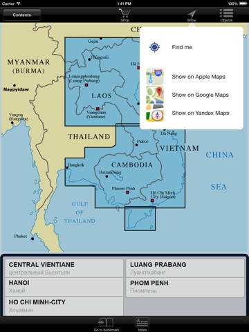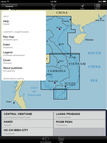 The edition contains separate maps of some cities: Vientiane (centre), Hanoi, Luang Prabang, Phnom Penh and Ho Chi Minh. Sights, temples, hospitals and other objects which may be of interest to tourists are shown on these maps.