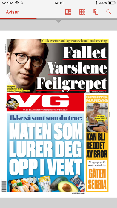 Med tilgang til VG eAvis har du alltid tilgang til en digital utgave av dagens papiravis. I tillegg får du tilgang til tidligere utgaver og våre magasiner.
