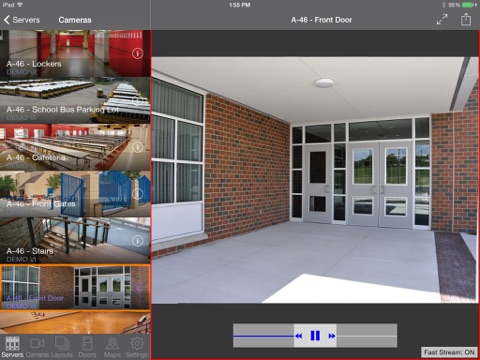 VI Mobile 2 is a video management system app that allows authorized "on the go" users to access live and recorded video from any camera on any server. Users can view control PTZ cameras, view full resolution and high frame rates with H.264. The app imports all settings from a single address providing users access to individual cameras or in groups of cameras in pre-defined layouts. Users can save or email snapshots, view recorded images by alarm or specific times and view thumbnails images on facility maps. User access is controlled by the Video Insight Server with robust integration with Active Directory/LDAP users and groups. Access Control allows you to lock and unlock doors, and view entry and alarm history for the doors on your system.