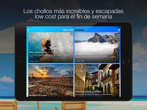 Con la aplicación de Awesome Travel recibirás las mejores ofertas seleccionadas diariamente de manera directa en tu iPhone y iPad.