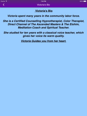 Access Victorias soothing and healing voice, leading you through Guided Imagery, Visualizations and Colour Meditations...!