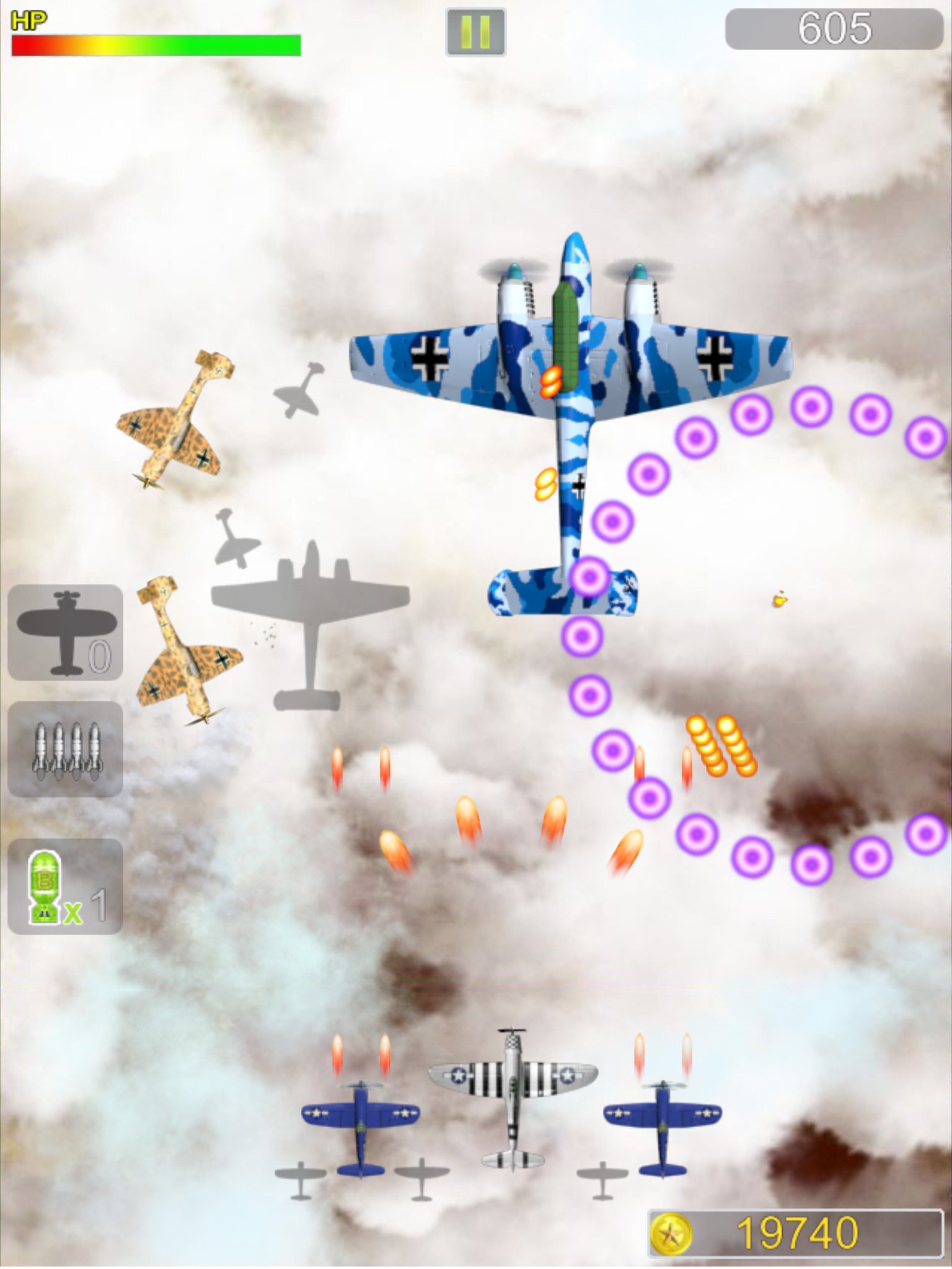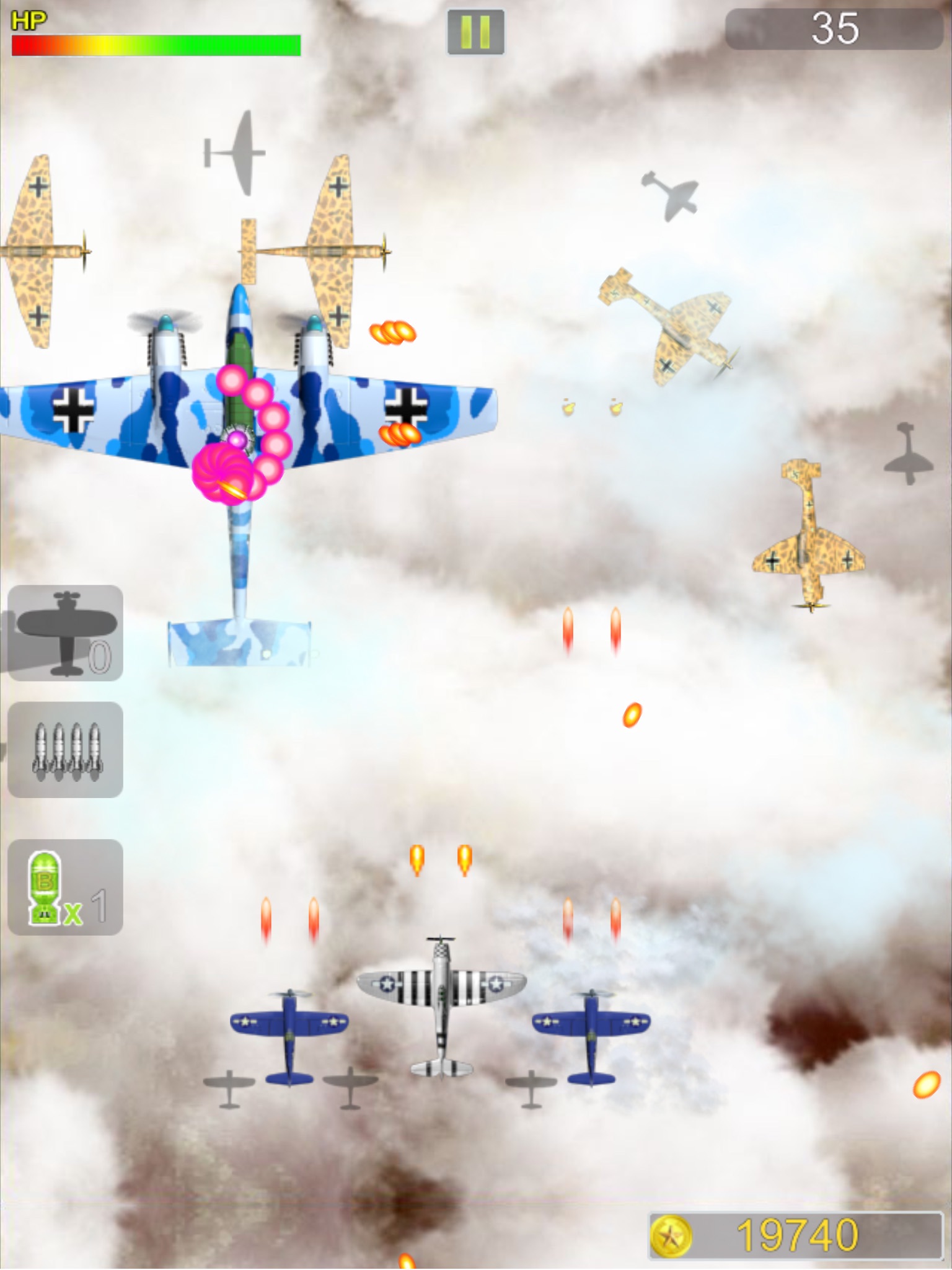 -7 World War II fighters with 3 different characteristics of wingmen. Different combinations will give the player different attacking tactics.
