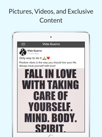 *Vida Guerra Monthly Subscription is available as an In-App Purchase. You can subscribe and pay through your iTunes account. Your subscription will automatically renew unless cancelled at least 24 hours before the end of the current period. No cancellation of the current subscription is allowed during active subscription period. Auto-renew may be turned off by going to your Account Settings after purchase. In the United States a monthly subscription is $2.99/month. Prices will vary on location.