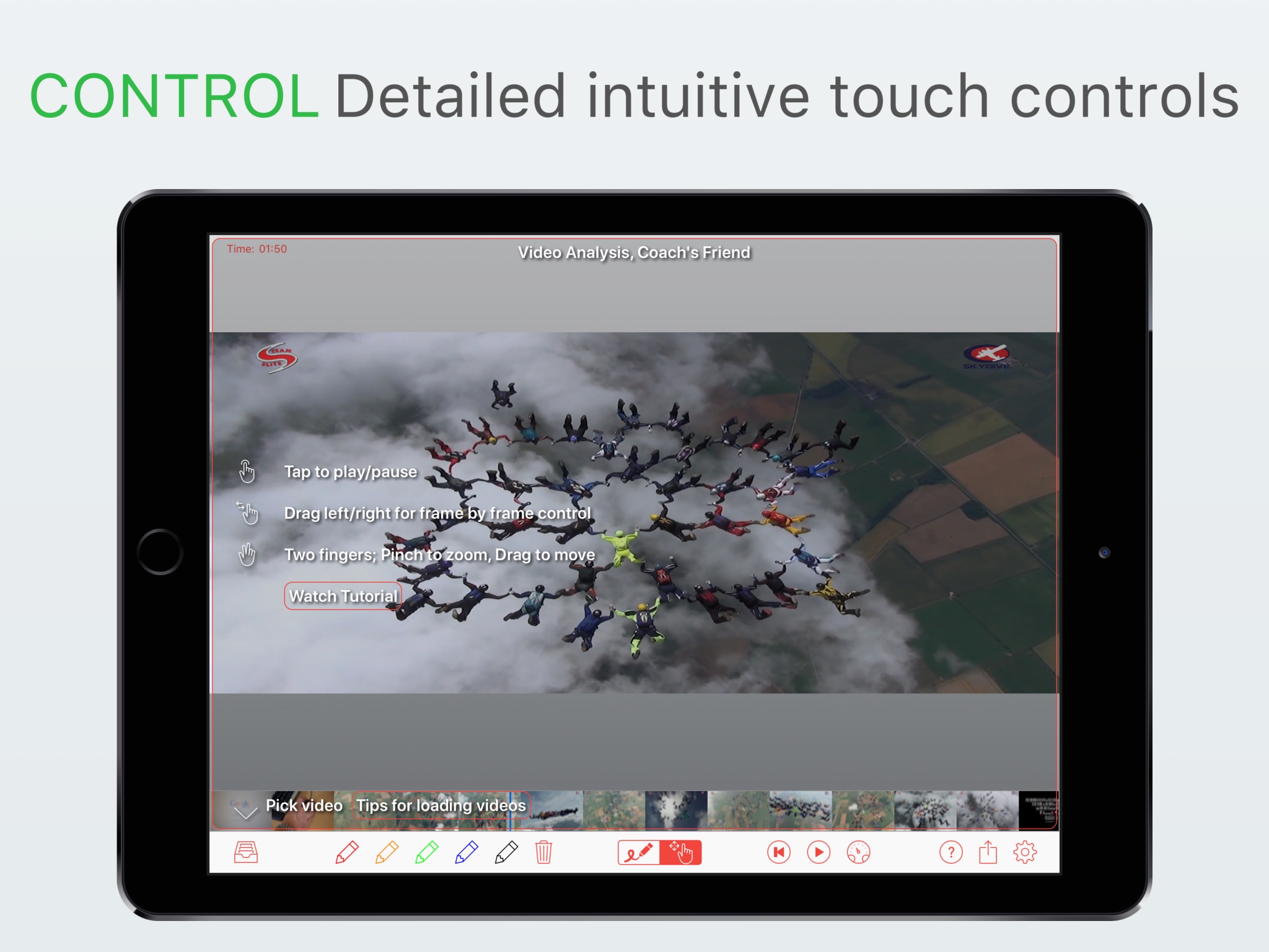 Intuitive touch controls make it easy to zoom in, annotate and show slow motion action.