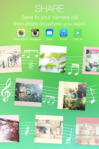 VideoBackgroundMusicSquare™ offer Easy and Quick way to silence original video sound and add up to 10 songs from iPod. Select your favourite song then trim the best part, make your instagram video full of senses.