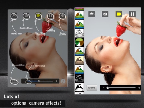 -LOTS of cool camera effects to edit your video! Forget plain and dull basic videos; now you can make them look classy, funny, professional or whatever you feel like!