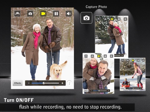 -Flash lighting change when YOU need it! While you are filming just tap on the flash icon and without having to stop filming youll get the light needed for the perfect video!