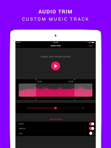 Video Editor app for iPhone and iPad simplifies the entire process of adding music to your videos. Grab videos directly from your camera or gallery and cut out unwanted moments using the video trimmer feature. You can add tracks to any videos by recording the audio yourself or choosing songs from iTunes Music.