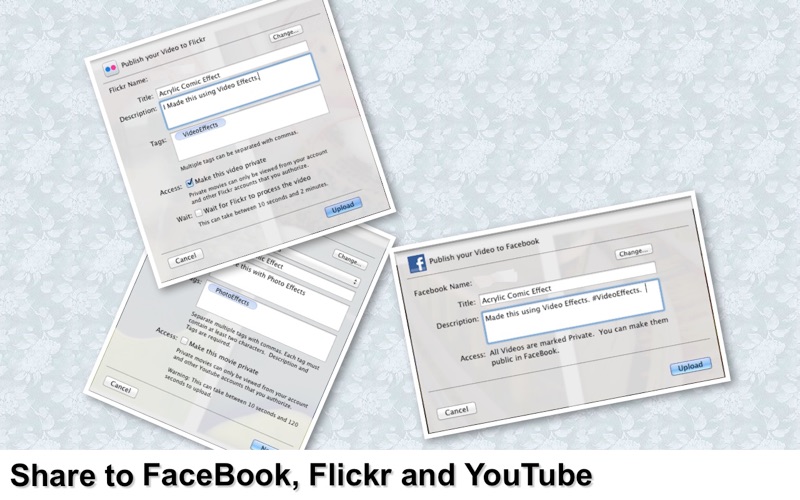 Easy to use. Just drag and drop your photo and select the effect. And its perfect for taking selfies by using the built in camera and uploading it to Facebook, Flicker, Twitter or YouTube . You can also make short video clips too.