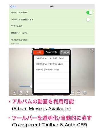 ・再生速度は1倍/0.5倍の2種類で、逆再生もできます。