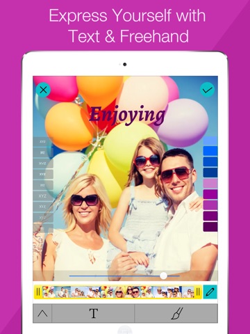 • Choose from variety of awesome fonts, colors. Adjust the position of your texts.