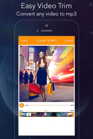 - Convert to MP3 from video with selected time intervals as you like and save in phone with same mp3 quality in video.