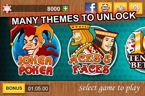 - 8 Amazing Poker Games: Joker Poker, Jack or Better, Aces & Eights, Aces & Faces, Deuces Wild, 10’s or Better, Deuces & Joker Wild, Double Bonus