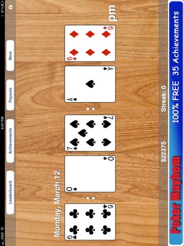 This app is a working clock made with poker cards and its also a video poker game. The cards show the current time in H:MM:SS format and it updates every second.