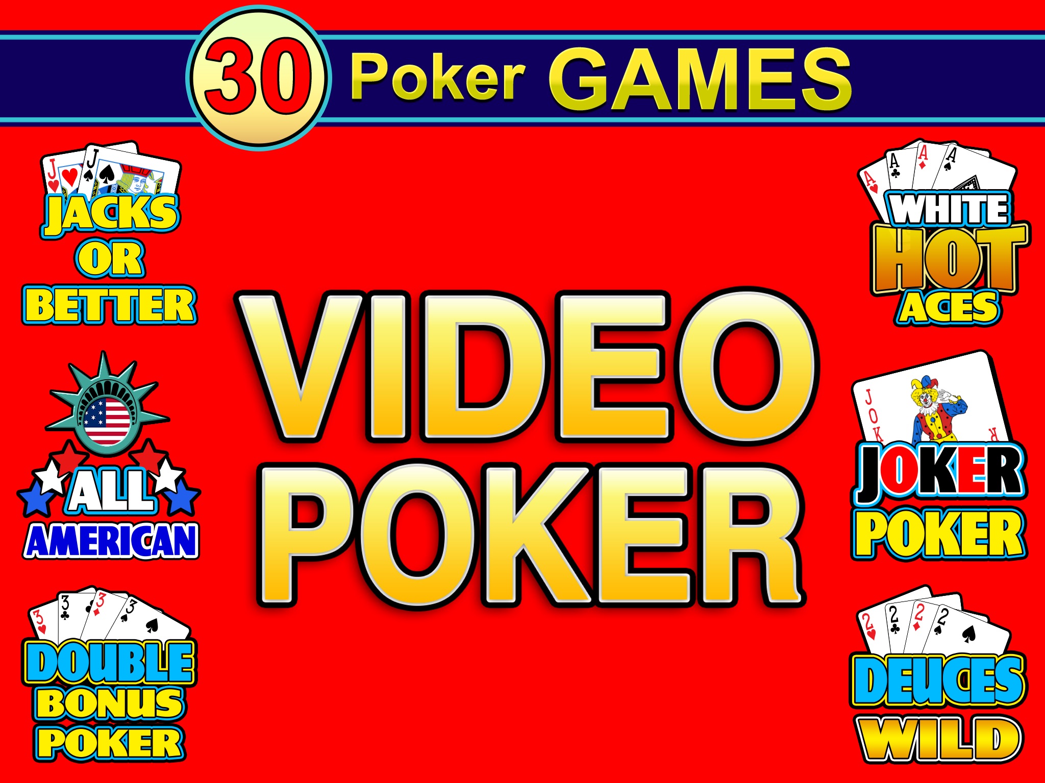 • Play all 24 Video Poker Games for FREE!